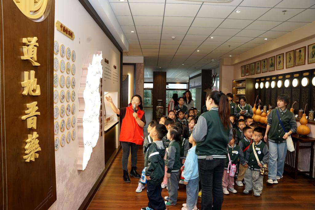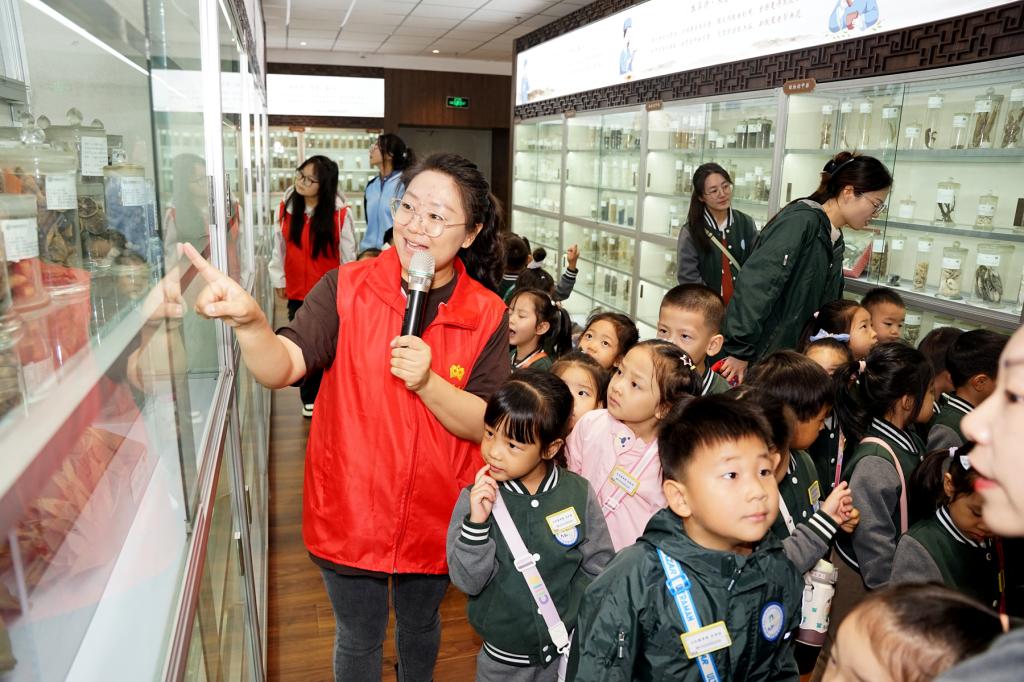 中药标本馆内,琳琅满目的药材标本引人入胜,孩子们认真聆听讲解,辨认常见药材,惊叹于大自然的慷慨馈赠。
