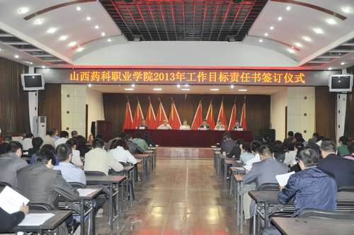 5月8日下午,学院2013年度工作目标责任书、精神文明建设责任书、党风廉政建设责任书签订仪式在文体活动中心举行。学院领导及全体中层干部、副高以上职称教师出席了本次会议。会议由党委副书记、院长李华荣同志主持。...2013-05-10 -