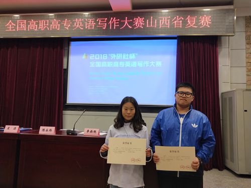 近日,AG电子官网在“第九届‘外研社杯’全国高职高专英语写作大赛”山西省复赛中喜获佳绩,李姝老师指导的17级药学系王敏泽同学荣获一等奖,郭丽老师指导的17级药学系王璐同学荣获三等奖。2018-10-29 -