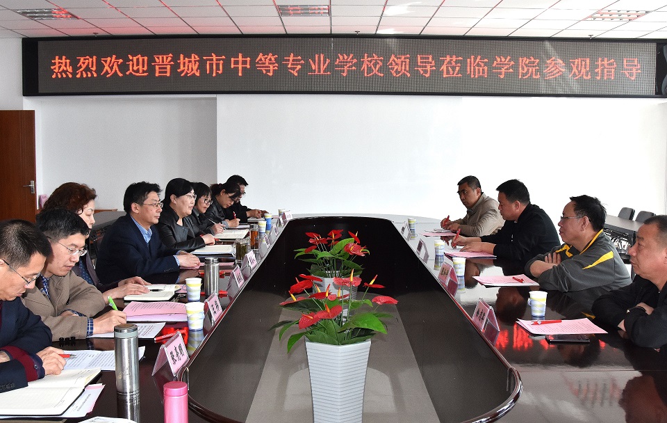 2019年4月2日上午,晋城市中等专业学校副校长陈广瑞一行4人来学院考察交流,AG电子官网党委副书记、院长张震云,党委委员、副院长王仙芝及相关部门、教学系主任参加了交流座谈。 学院党委副书记、院长张震云首先代表学院对...2019-04-03 -
