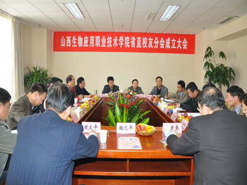 2010年11月27日,山西生物应用职业技术学院运城校友会成立大会在运城隆重召开。运城宾馆门前彩旗飘扬,红色拱门醒目耀眼,几十个祝贺单位送来的花篮分别装点在了会议室门厅和主席台两侧,一派喜气洋洋的气氛。 学院党...2010-11-28 -