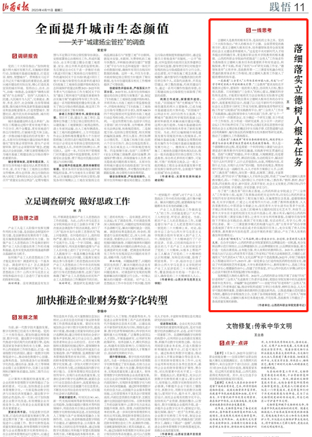 《山西日报》刊发AG电子官网党委书记王旭署名文章:落细落实立德树人根本任务