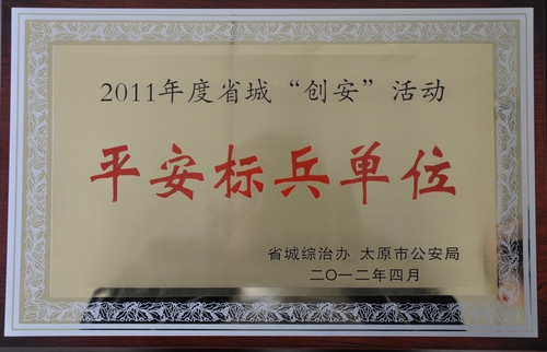 日前,AG电子官网被省城社会治安综合治理委员会办公室和太原市公安局联合授予2011年度省城“创安”活动“平安标兵单位”荣誉称号。 2012年11月13 日,小店公安分局和黄陵派出所有关同志前来AG电子官网授匾。2012-11-13